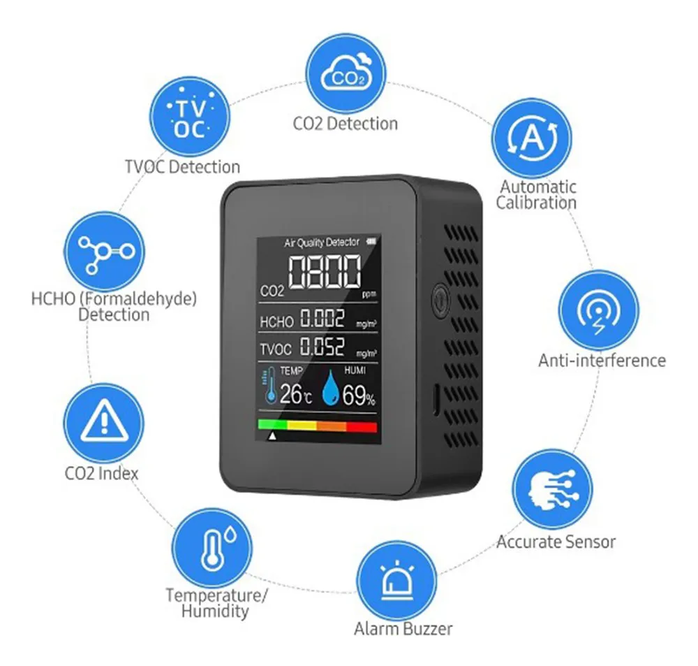 Detector de Formaldeído Tvoc Sensor Co2 Pm2.5 Temperatura